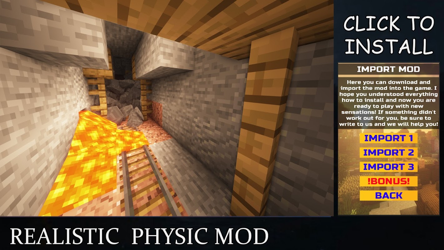 Physics in Minecraft Pocket Edition sometimes looks completely unrealistic. I would like to fix this state of affairs, with which the realistic Physics mod will help. There will be more updates in the future.