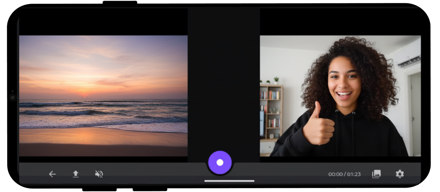 Saniyeler içinde tepki videoları oluşturun! Tepkinizi kaydedin ve istediğiniz videoyla birleştirin.