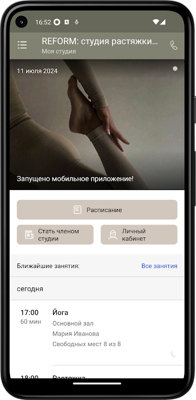 REFORM sağlıklı fitness stüdyosu uygulaması. Yoga, esneme, pilates vb.