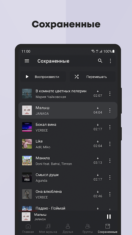 VK'dan İnternet olmadan müzik dinlemek için parçaları cihazınıza kaydedin.