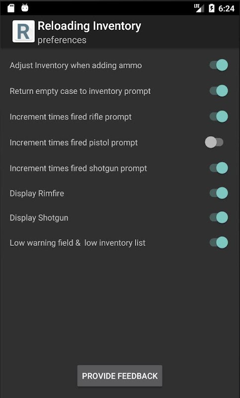 Ayrıca "Düşük Envanter" listesidir dahil. Bu durum tercihlerinde / kapama açılabilir. Etkin olduğunda, bir alan, bir "düşük uyarı" sayısını tanımlamanızı sağlar her öğe (cephane, pirinç, mermi, toz, astar ve Rimfire) görüntülenir. Eğer tüm envanter girdikten sonra, ve astar, kurşunların, pirinçten envanterinizi "cephane eklerken Envanteri ayarlayın" açmak ve cephane miktarını artırmak zaman toz otomatik olarak uygun miktarda azalacaktır. Eğer "ateş" seçtiğinizde Cephane azalacaktır. envanter ayarlandı ve sizin için takip tutuluyor gibi yapılandırılmış bileşenlerinden herhangi miktarı yapılandırılmış "düşük uyarı" sayının altına düşerse, otomatik olarak "Düşük Envanteri" listesine eklenecektir. Eğer düşük konum bilmek tüm envanterine göz kazmak zorunda değilsiniz, çünkü bu daha da kolay alışveriş yapar!