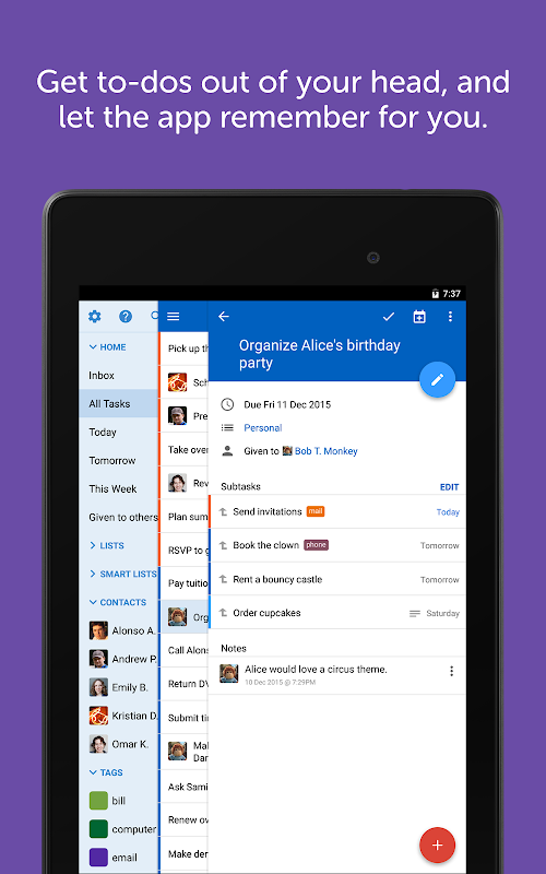 • Öncelikler, son tarihler, tekrarlar, listeler, etiketler ve daha fazlasıyla istediğiniz şekilde organize edin