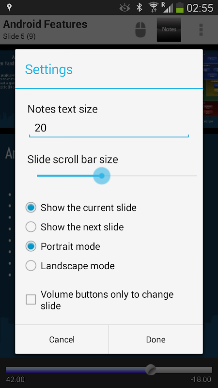 PowerPoint Keynote remote , Android'de en çok indirilen Bluetooth ve WiFi sunucusu. PowerPoint ve Keynote sunumlarınızı Windows ve Mac OS X için uygulamayı zengin ve kullanımı kolay bir özellikle geliştirin.