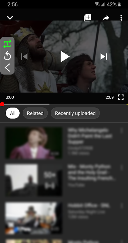 YouTube uygulamasında videoları döngüye almanızı sağlayan kayan bir widget