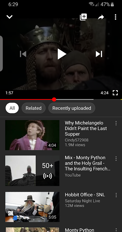 YouTube uygulamasında videoları döngüye almanızı sağlayan kayan bir widget