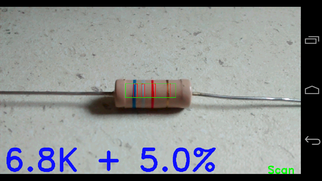 The application scans the color bands of a resistor and determines it's resistance. Uses OpenCV.