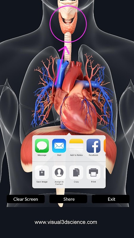 Solunum Sistemi Anatomisi çalışması için 360 ° döndürmenize olanak sağlayan Solunum Sistemi Anatomisi uygulaması, Zoom ve son derece gerçekçi bir 3D model etrafında kamera hareket ettirin.