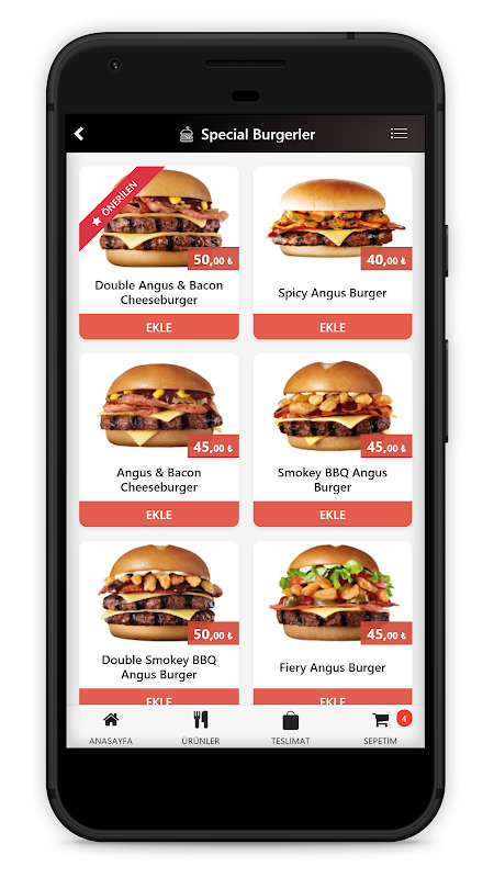 RestBurger mobil uygulaması ile sıra beklemeden veya masanızda otururken kolaylıkla siparişinizi verebilir ve ödemenizi tamamlayabilirsiniz. Siparişiniz hazırlandığında garson masanıza kadar getirir, veya kasadan teslim alabilirsiniz.