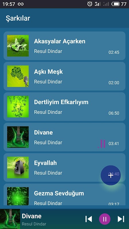 2008 yılı Temmuz ayında arkadaşlarıyla birlikte Karmate (değirmen) grubunu kurdu ve grubun solistliğini yaptı. Karmate, Nani ve Nayino adlı iki albüm çıkardı. Resul Dindar gruptan 2012 yılında ayrılarak müziğe tek başına devam etme kararı aldı ve 1 Nisan 2013 tarihinde Divane adlı ilk solo albümünü yayınladı. Resul Dindar'ın seslendirdiği eserler Türkçenin yanı sıra, Doğu Karadeniz Bölgesi'nde konuşulan Lazca, Megrelce, Gürcüce ve Hemşince gibi dilleri de kapsamaktadır.