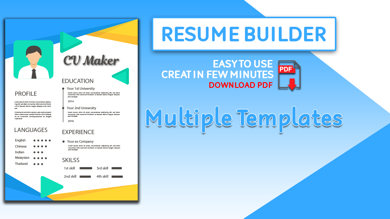 Bu özgeçmiş oluşturucu uygulaması, herhangi bir kategorinin ve herhangi bir alanın özgeçmişlerini oluşturmak için çok yararlıdır. Farklı Field Cv'ler gibi yapabilirsiniz