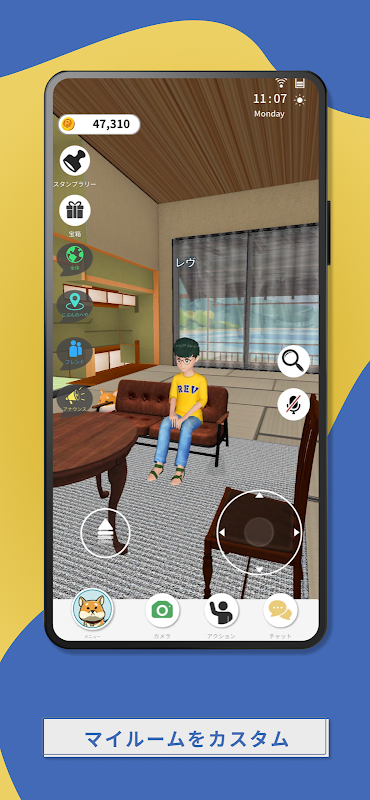 ・Herkese kendi odası verilir. Duvarlarınızı ve mobilyalarınızı özelleştirerek kendinize özgü bir alan yaratın. Ayrıca en yakın arkadaşlarınızı davet edip sohbet edebilirsiniz!