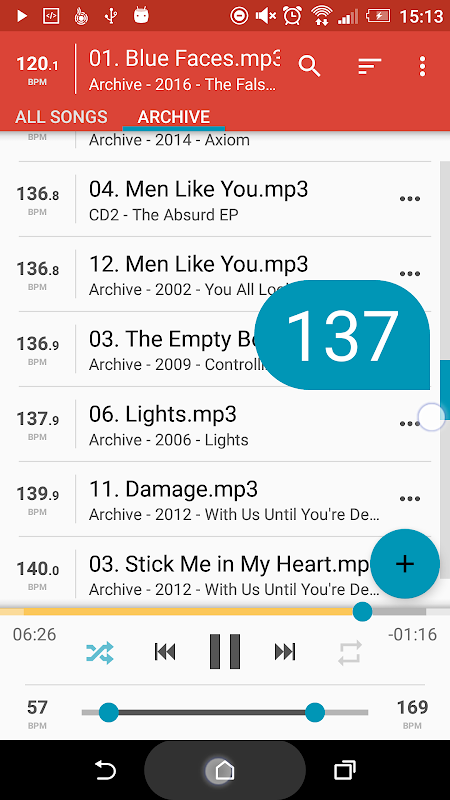 - Şarkıları germe Otomatik zaman filtre parametreleri fit olmak