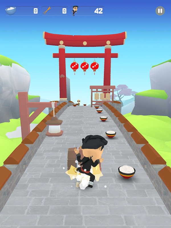 Rice Rush, oyuncuların Hanwe'yi Çin duvarında koşturduğu sonsuz bir koşucu! Yeni karakterlerin, görünümlerin ve temaların kilidini açmak için mümkün olduğunca çok yemek çubuğu ve pirinç kasesi toplayın.