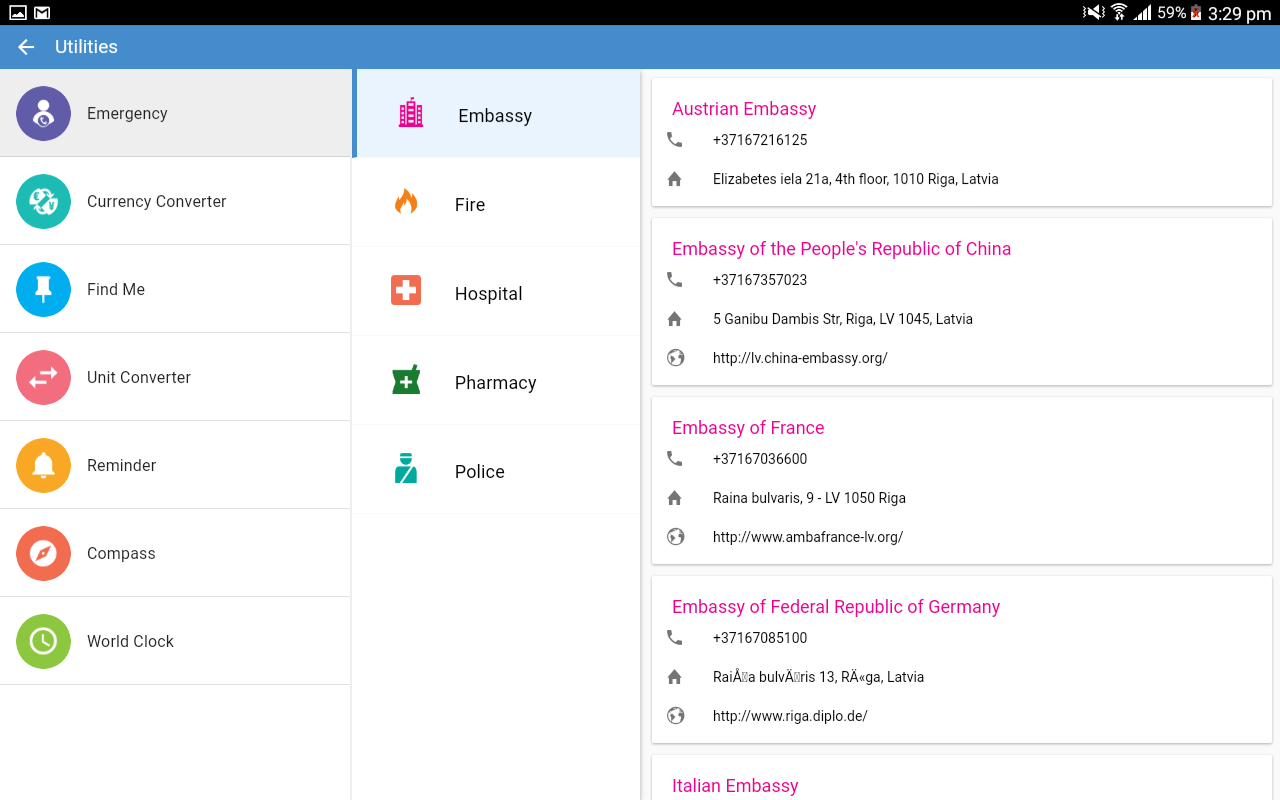 • otel rezervasyonu, para birimi dönüştürücü, hava durumu, dünya saatleri, hatırlatma, alarm ve uygulaması içinde daha birçok mevcut gibi Seyahat yarar.