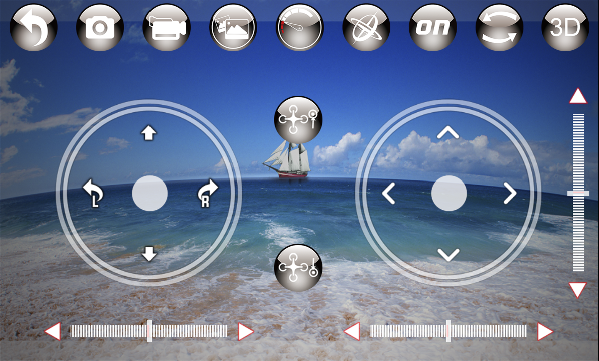 2.Display the real-time video which taken by the camera on the aircraft,video data transmitted via 2.4G WiFi protocol.