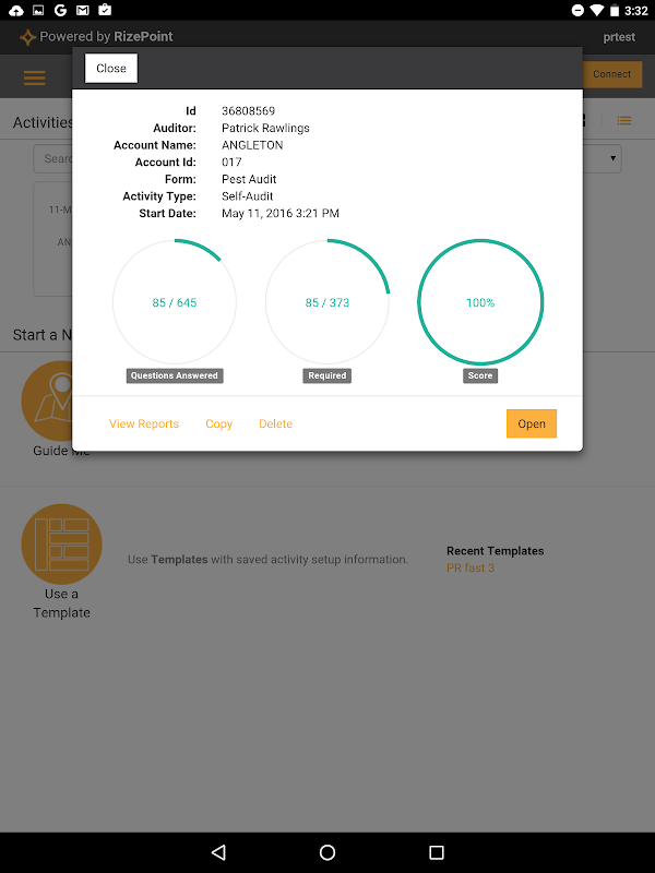 RizePoint Mobile Auditor allows employees, using a smartphone or mobile tablet, to easily conduct assessments and evaluations. RizePoint Mobile Auditor seamlessly synchronizes with RizePoint, a SaaS application, to receive custom-built smart-forms and to allow information collected to be uploaded where it is consolidated, correlated and securely published into reports available for use across your entire organization. This allows the right people, at the right time, to receive alerts as critical issues arise, identify trends as soon as they appear and manage corrective actions through to completion.