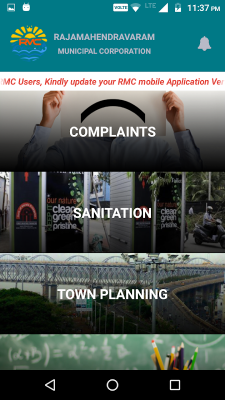 Rajamahendravaram Municipal Corporation has taken the initiative to develop RMC Mobile application in order to bring its services closer to the people. It is our pleasure to reach out to all of you through our RMC Mobile App. This new mobile application provides information and services offered by Rajamahendravaram Municipal Corporation.