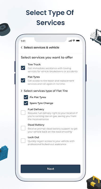 Başlamak için sürücülerin kimliklerini ve niteliklerini doğrulamak için gerekli belgeleri göndermeleri gerekiyor. Çekici hizmetleri için sürücülerin, bu özel hizmetin sağlanmasına ilişkin gereklilikleri karşıladıklarından emin olmak amacıyla araç ayrıntılarını eklemeleri gerekir. İçiniz rahat olsun, platformumuz süreci basitleştirerek hızlı bir şekilde hizmet sunmaya ve gelir elde etmeye başlamanızı kolaylaştırır.