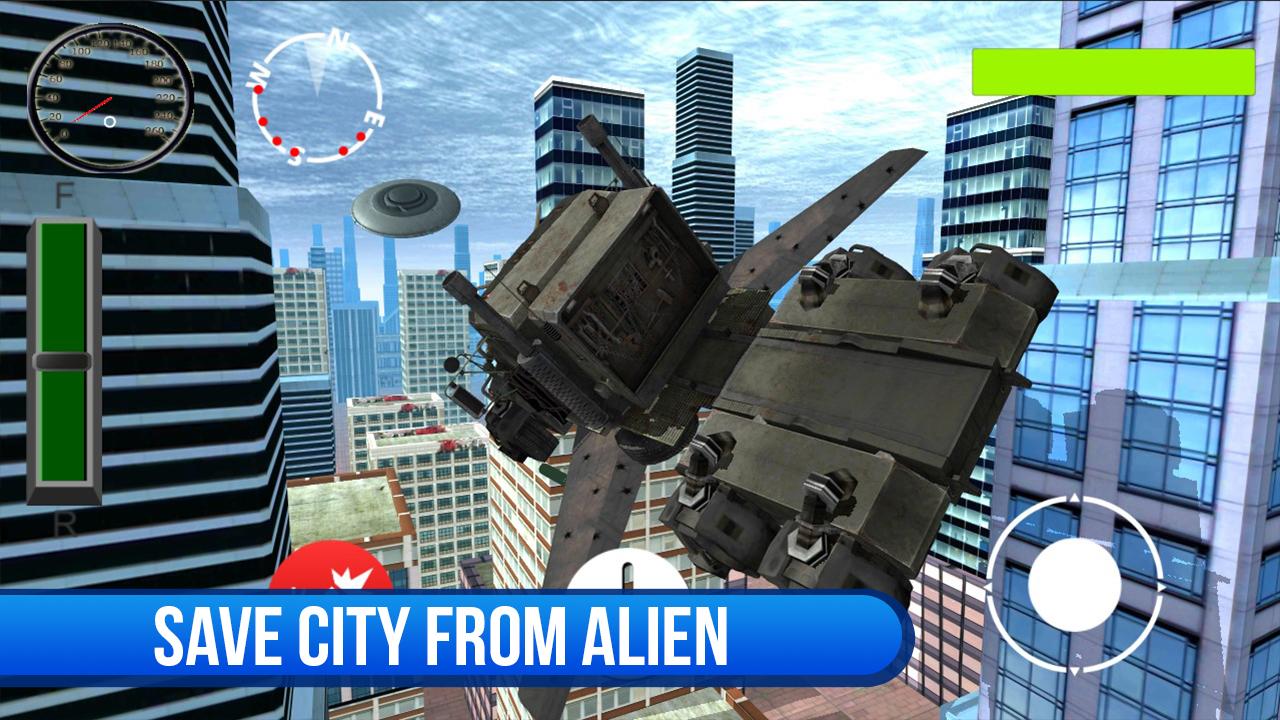 You can enjoy beautiful views of the city and the surrounding nature through amazing 3D graphics of simulator. Consider every detail of its futuristic flying car - robocar and appreciate the beauty of future technologies. Good physics and management will give the effect of total immersion in flight and allow to do incredible stunts. Damage system will add realism and give you the opportunity to shred minions of X Ray into small pieces. A fascinating music of simulator will not get bored, and make vigorous battle. You feel like a real futuristic robocar!
