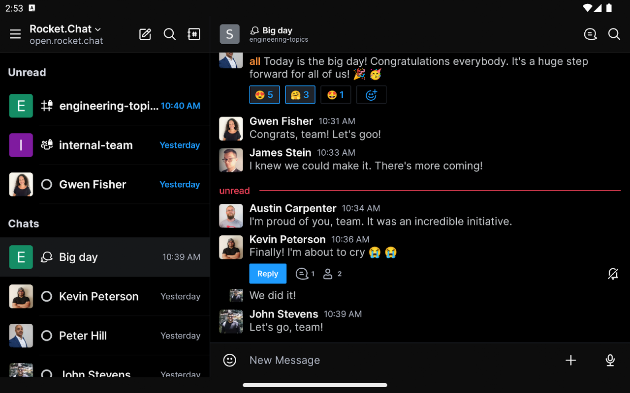 Github'daki binlerce katılımcı ve yıldızla Rocket.Chat, açık kaynak iletişim sektöründe dünyanın en büyük sohbet geliştiricileri topluluğuna sahiptir.