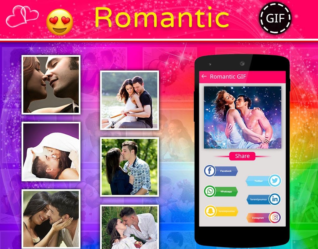 In this Romantic GIF application you can use it to send greetings to your friends and family.