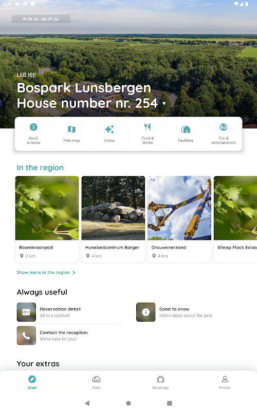 Yeni başlangıç ekranımız, hem konaklamanız için hazırlık hem de gerçek konaklamanız için başlangıç noktası görevi görür. Tüm tesislerden konaklama yerinizin genel görünümüne kadar parkınızla ilgili tüm önemli bilgiler burada bulunabilir. Haritamızla parkta kaybolmanız imkansız. Tüm sorularınız için lütfen park resepsiyonumuzla iletişime geçin.