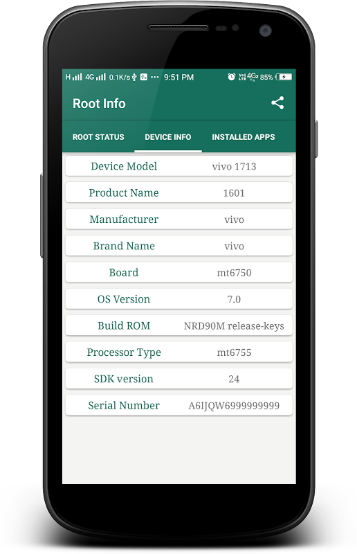 Kök bilgileri de inşa ROM, model adı, seri numarası gibi cihazınızın temel donanım bilgilerini sağlamaktadır.