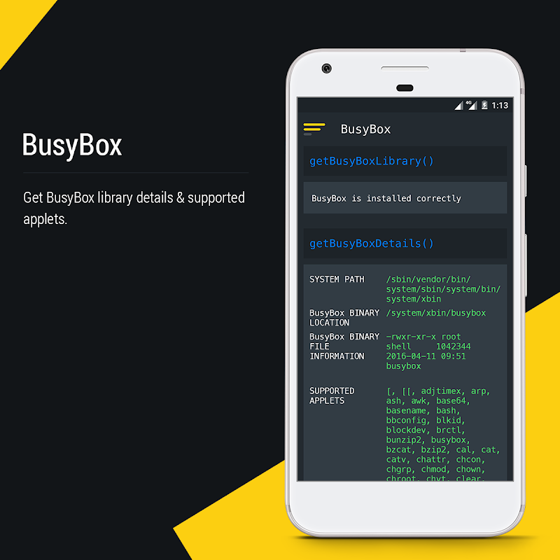 You can view BusyBox, SuperSu information of your device. It displays your device and manufacturer’s information, build version & hardware information.