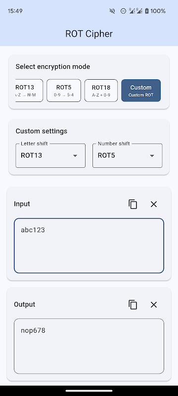 ROT13 Decoder, çeşitli ROT şifreleme yöntemlerini kullanarak metni kodlamak ve kodunu çözmek için kullanılan modern ve kullanıcı dostu bir araçtır. Bulmaca çözmek, temel kriptografiyi öğrenmek veya yalnızca metin dönüştürmeyle eğlenmek için mükemmeldir.