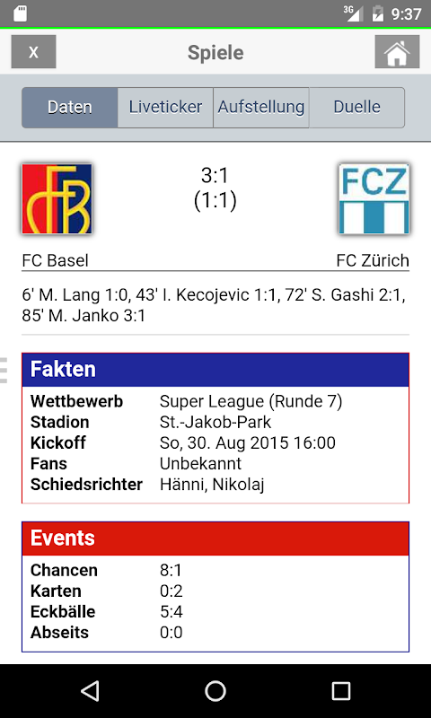 - Riesige Datenbank zu Spielen des FCB, der Schweizer Ligen und internationalen Ligen