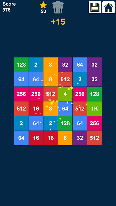 Just drag rows and columns to match 3 or more same adjacent numbers. Then, they will be removed from the board. The numbers are the repeated multiplication of number 2 [2, 4, 8, 16, 32, 64, ..., 1024, 2048, ...].