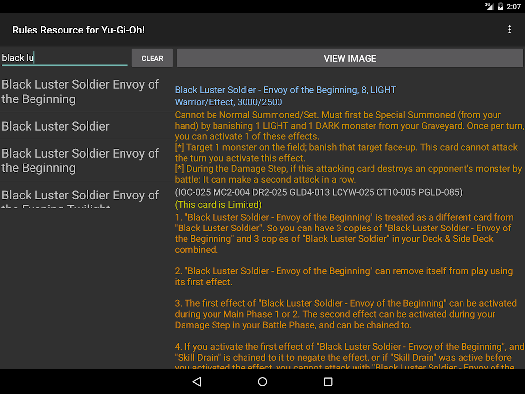 YGO TCG gelen kartları için Görünüm kartı metin ve kararları