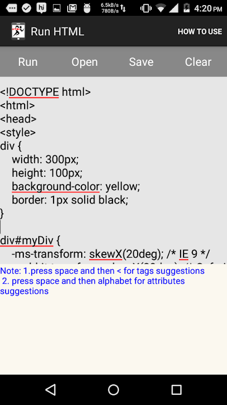 Write HTML code & see the output on phone!! Javascript, HTML5 and CSS supported