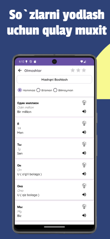 Ilovamiz yordamida rus tilini qiziqarli ve samarali o'rganing!