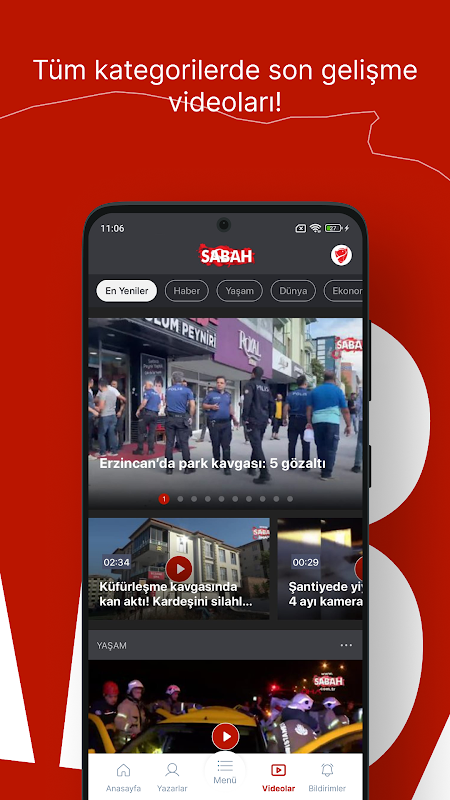 En yeni video haberlerle gündemin dikkat çeken anlarını ilk siz keşfedin. Sabah.com.tr’ye özel video içeriklerini ve canlı yayınları uygulama üzerinden kolayca izleyebilirsiniz.
