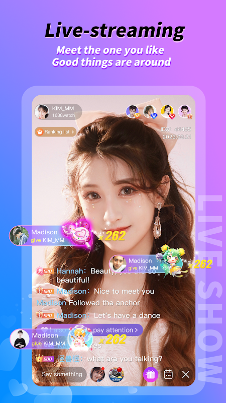 Sıcak Sıralamalar: 7/24 canlı yayın odaları 🕒, yoğun PK sıralama yarışmaları 🏆, aralıksız aktiviteler 🎉 ile favori yayıncılarınızı seçebilir ve kalbinizi koruyabilirsiniz ❤️.