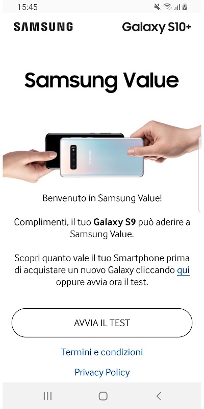 Attraverso l’App Samsung Value ti è possibile procedere ad una prima valutazione – non vincolante – dello stato di usura attuale del dispositivo in possesso, ai fini di una potenziale partecipazione a iniziative di supervalutazione/trade-in promosse da di Samsung.