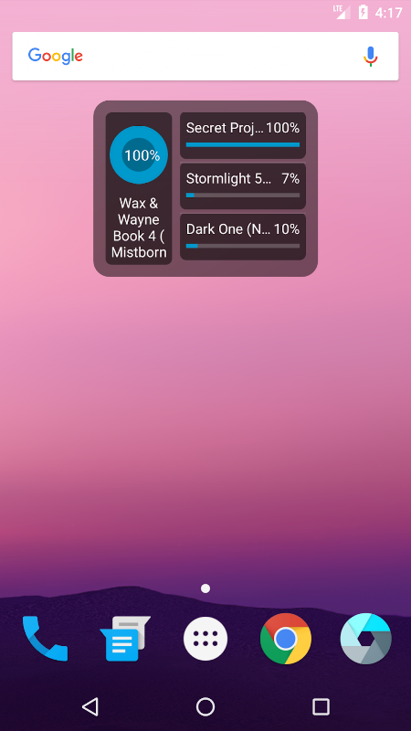 Resmi olmayan Sanderson Progress Widget, kendim için oluşturmak istediğim, ancak daha geniş Sanderfans için yayınlamak için mantıklı bulduğum bir bağımsız projedir.