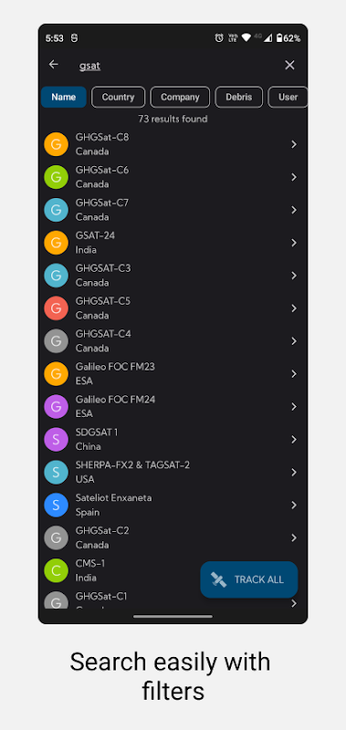 Tüm uyduların ayrıntılarını görüntüleyin, gerçek zamanlı olarak izleyin ve düzenli güncellemeler alın