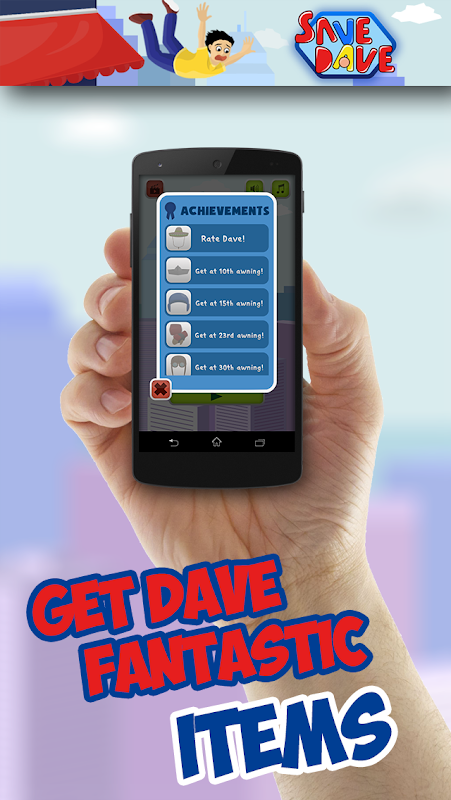 To save him, the rules are simple: tilt your phone to help Dave bounce on awnings and avoid his tragic imminent death!
