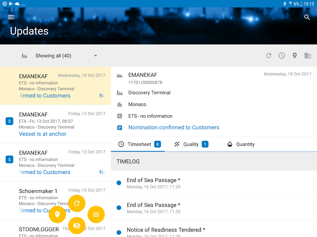Saybolt Güncellemeler ile artık mobil cihazınızda tüm aday erişebilirler. tüm adaylarınıza kolay özet yararlanın. gecikmeler, timelogs, analiz sonuçlarının veya miktar ölçümlerinin gerçek zamanlı güncellemeleri alın. Biz haberdar şimdiye kadar nereye sen devam edecektir. App doğrudan Saybolt iletişim kişiyi arayın. Seçilen meslektaşları ile aday paylaşın. üçüncü şahıslara Posta gecikme raporlar ve Timelogs.