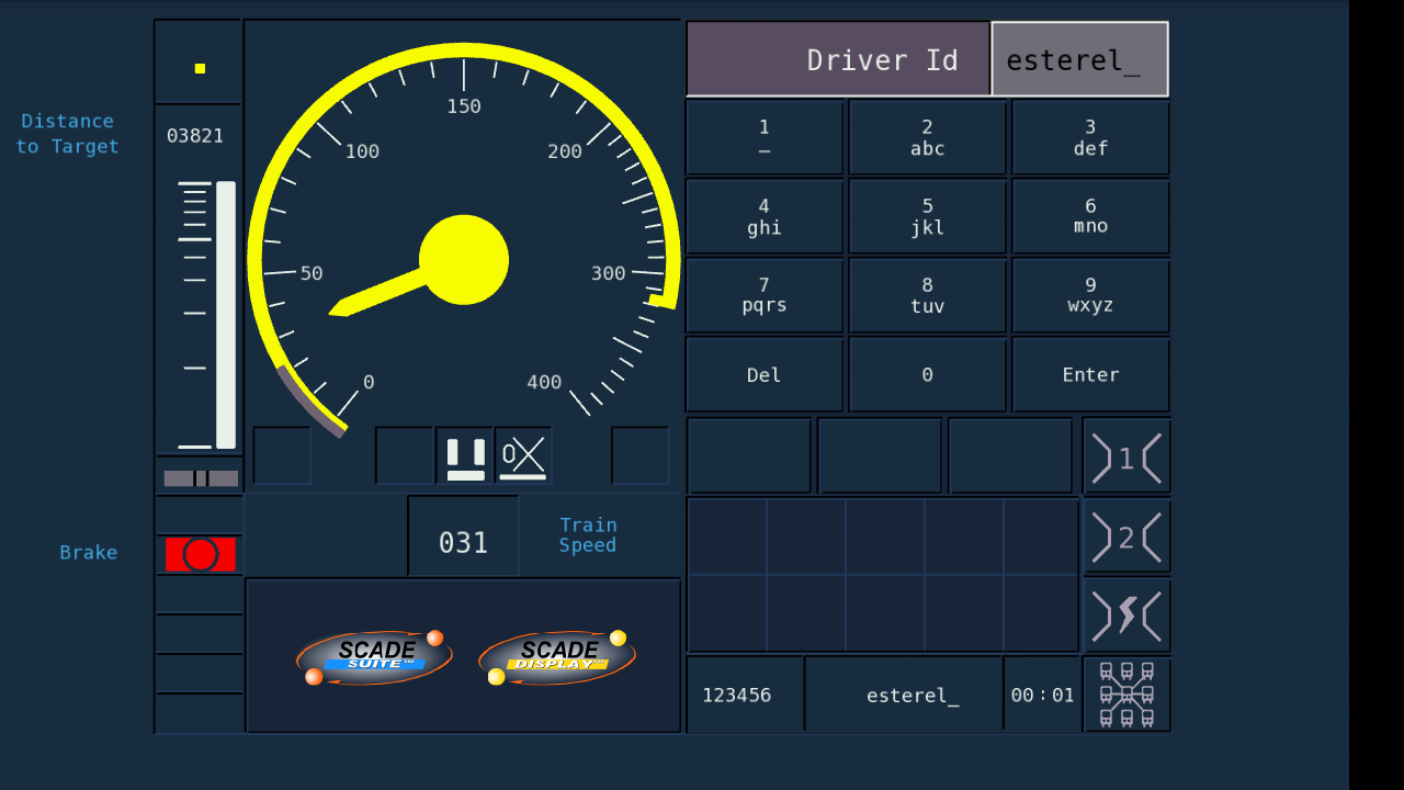 The Rail Driver Machine Interface (DMI) application illustrates, for educational purposes, how tactile interactivity concepts are brought into the control stand of the train cab with a realistic Driver Machine Interface compliant with the European Rail Traffic Management System (ERTMS) standard. The Avionics MFD application has been automatically generated from SCADE Suite® and SCADE Display®.