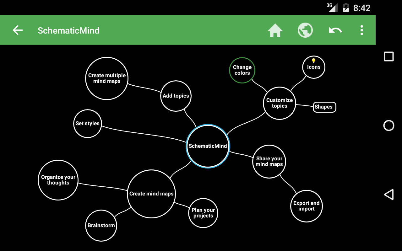 Ücretsiz zihin haritası, Android için galası zihin haritalama yazılımı SchematicMind.
