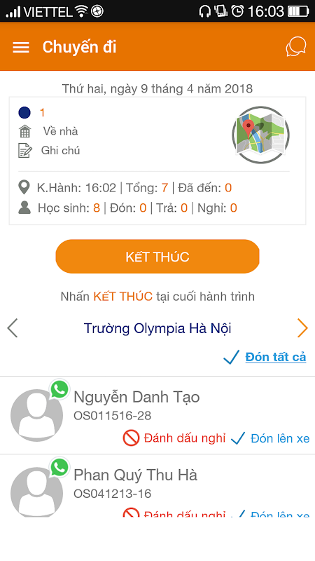 - Lịch sử các chuyến xe bus.