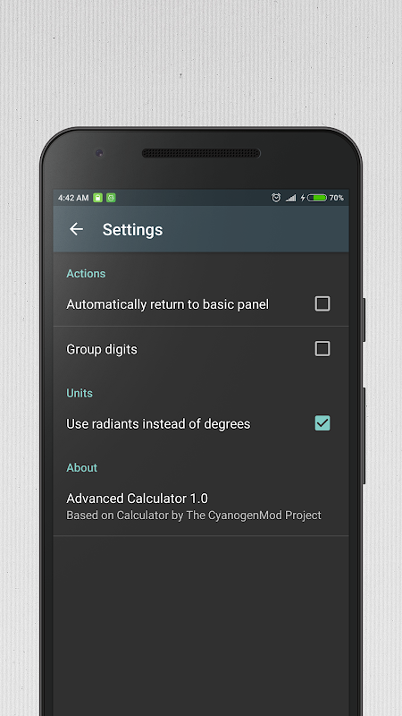 Bilimsel Hesaplama maddi görünüme sahip güçlü bir Android bilimsel hesap makinesi. Bu karmaşık sayı denklemleri desteği ile birkaç Android hesap biridir. Özellikler: