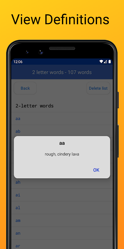 The go-to Scrabble dictionary reference for resolving Scrabble disputes or improving gameplay. Dictionary definitions included. All offline.