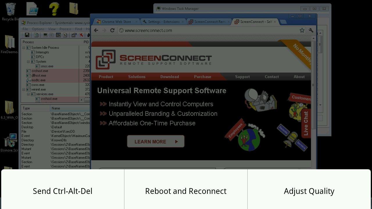 If you don't have access to ScreenConnect already, visit http://www.screenconnect.com/ to become acquainted with the best remote support software available today.