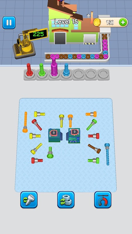 Bu oyun, kullanıcının tüm dikkatini gerektirir çünkü tek bir yanlış hareket, vida sıkışmasında seviyenin başarısız olmasına neden olur. Oyun ilerledikçe, kullanıcılar problem çözme becerilerini test eden giderek zorlaşan seviyelerle karşılaşacaklar. Deseni bozmadan cıvataları sökerek renkli blok vidalarını sökün.