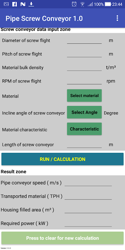 Vidalı konveyör tasarımında "Mühendislik sınıfı" uygulamasını denemek isterseniz lütfen Play mağazasında "ScrewCalPro" veya "ScrewCalPro Engineering" bulun.