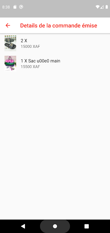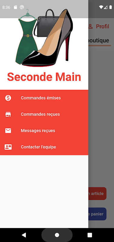 L'application contiens trois categories principales: Habits, Chaussures et sacs. A ce niveau, l'application sera appellee a évoluer.